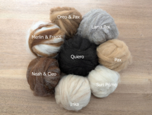 Wolle und Spinnfutter von unseren Alpakajungs