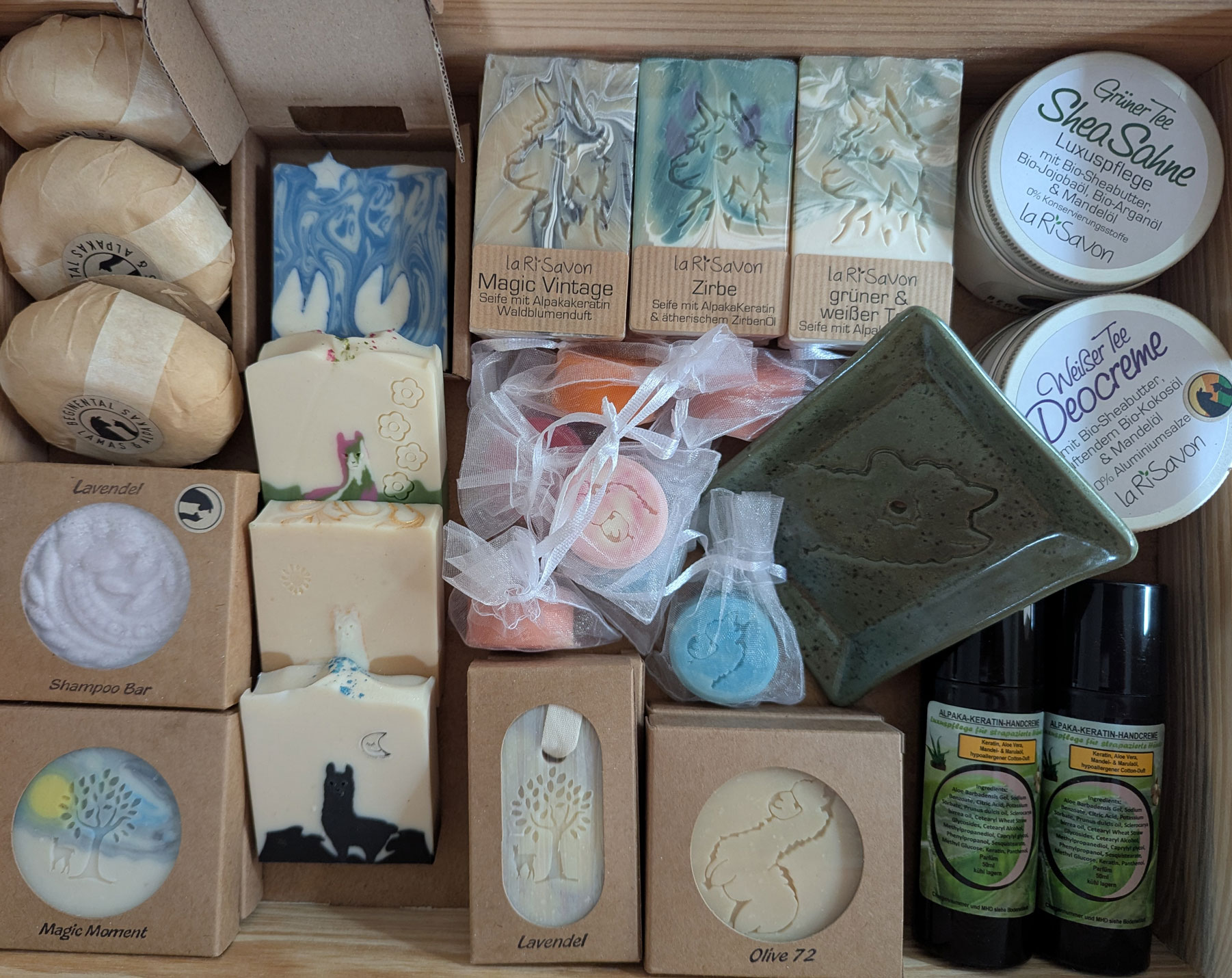 Handgesiedete Seifen aus Alpakakeratin und Naturkosmetik