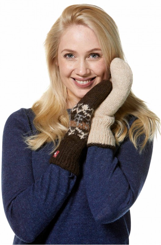 Die Besonderheit ist das wendbare Design, so lassen sich Mützen und Handschuhe für Erwachsene von beiden Seiten tragen. Eine Seite ist in buntem Jacquard-Strick gearbeitet, die andere Seite unifarben. Kenner lieben das typisch rustikale Design und die besonders dicke und flauschige Qualität.