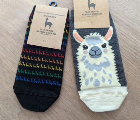 Das Engagement von Anden Art in der Zusammenarbeit mit Produzent*innengruppen in Peru und Ecuador ermöglicht vielen Menschen eine gerechte Lebensgrundlage. Durch den Kauf dieser Socke unterstützt ihr also nicht nur die Haltung unserer Lamas und Alpakas.
