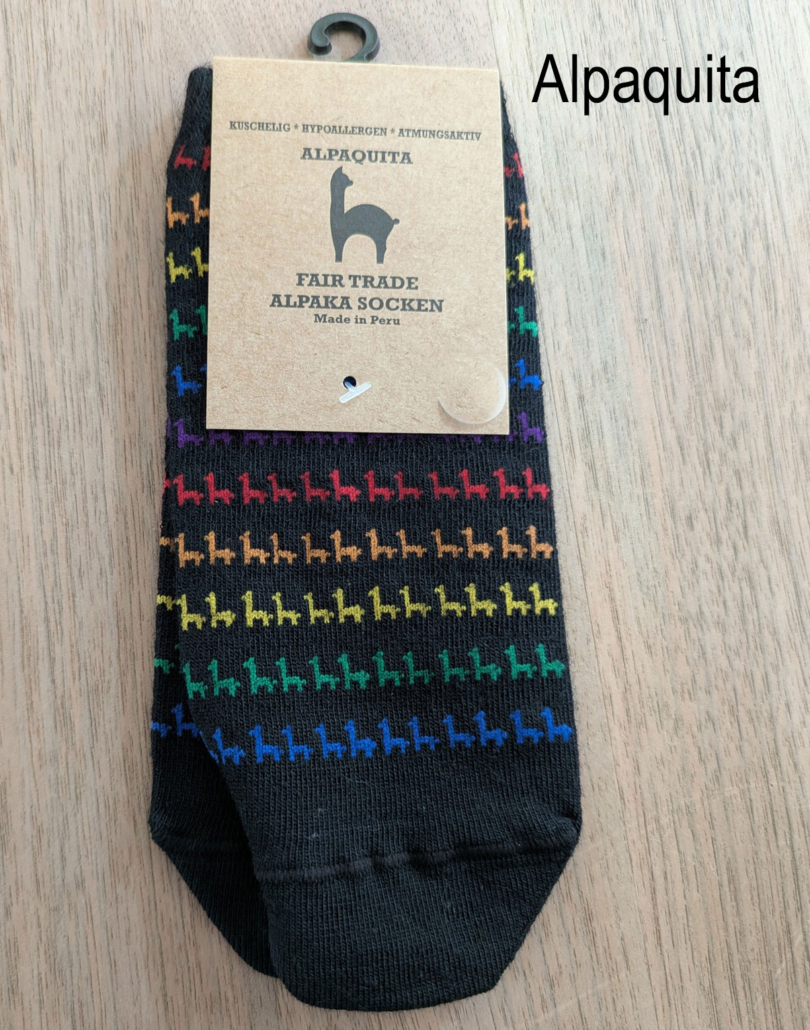 Das Engagement von Anden Art in der Zusammenarbeit mit Produzent*innengruppen in Peru und Ecuador ermöglicht vielen Menschen eine gerechte Lebensgrundlage. Durch den Kauf dieser Socke unterstützt ihr also nicht nur die Haltung unserer Lamas und Alpakas.