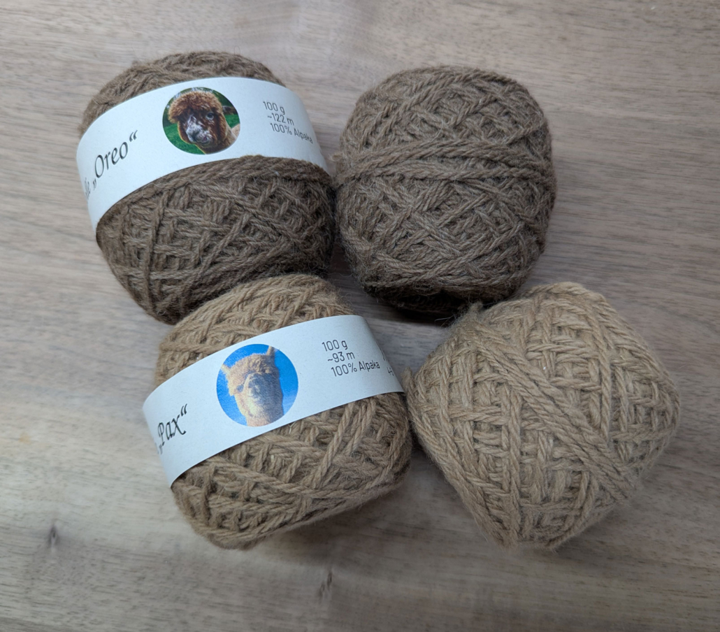 Hergestellt wurde die Strickwolle in den Brauntönen von Sunna-Alpakas, einer Manufaktur in Walsleben. Erhältlich als Knäuel zu 50 g.