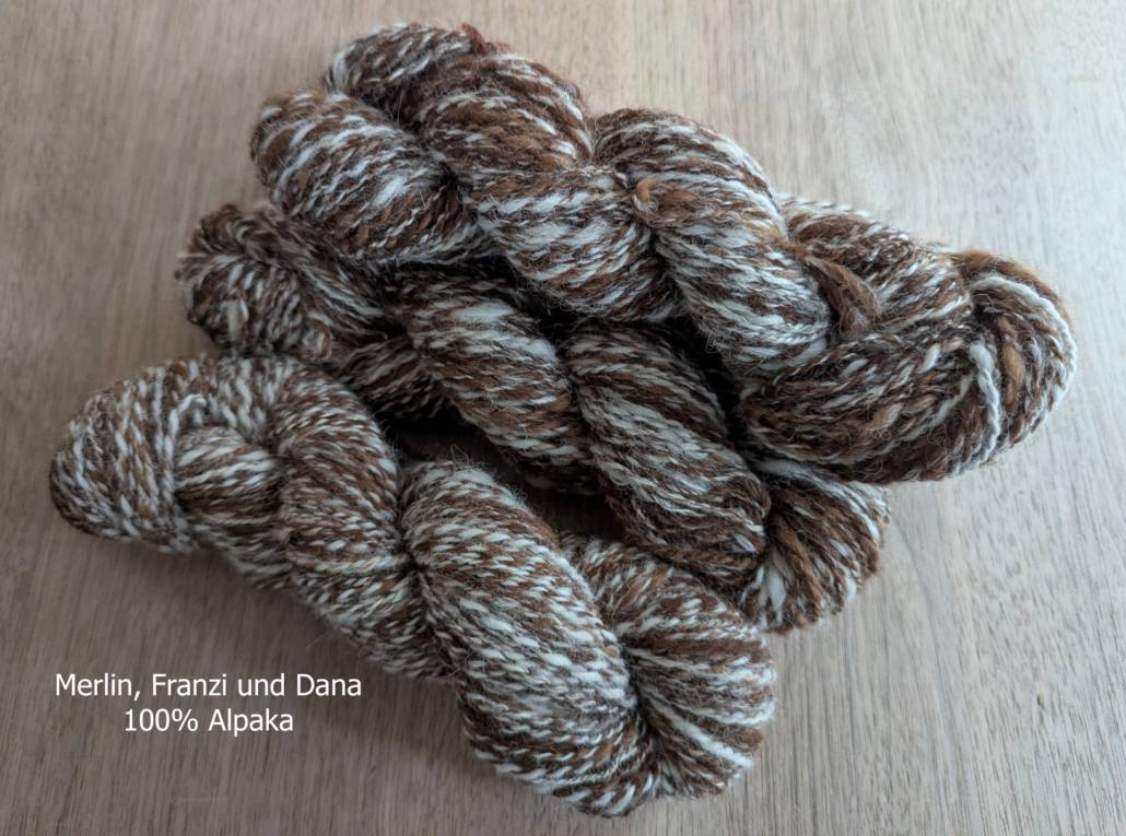 Merlin/Franzi/Dana – handgesponnen im Strang