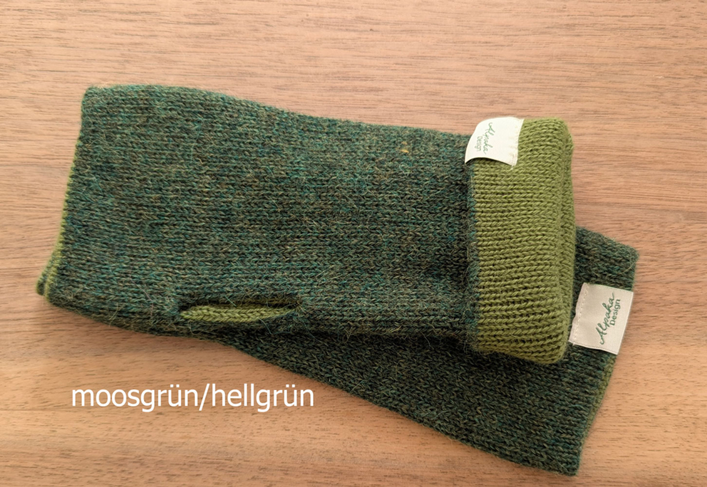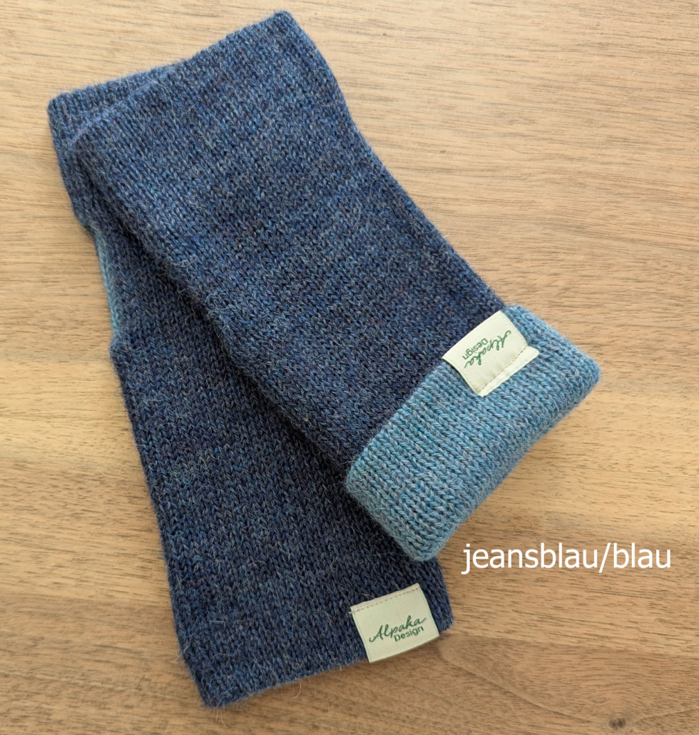 Diese Pulswärmer wurden aus 100% Baby-Alpaka gefertigt. Sie sind doppelt gestrickt, so dass sie nicht nur wunderbar weich und warm sind, sondern auch in zwei Varianten getragen werden können.