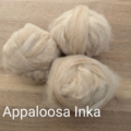 Inka – da sie eine Appaloosa-Stute ist und daher schon über Farbverlauf in ihrem Vlies verfügt, bleibt sie alleine (Baby-Alpaka-Qualität)
