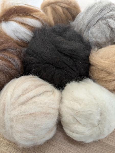 Wir haben sehr weiches flauschiges Kardenband erhalten, teilweise in Baby-Alpaka-Qualität und auch Surialpaka-Kardenband ist mit dabei. Besonders gefreut haben wir uns über das Kardenband von unserem Lama Roi.