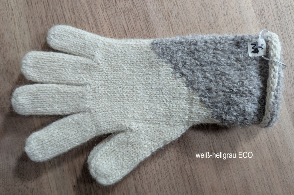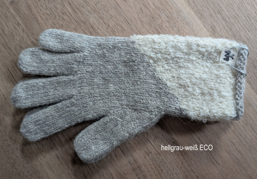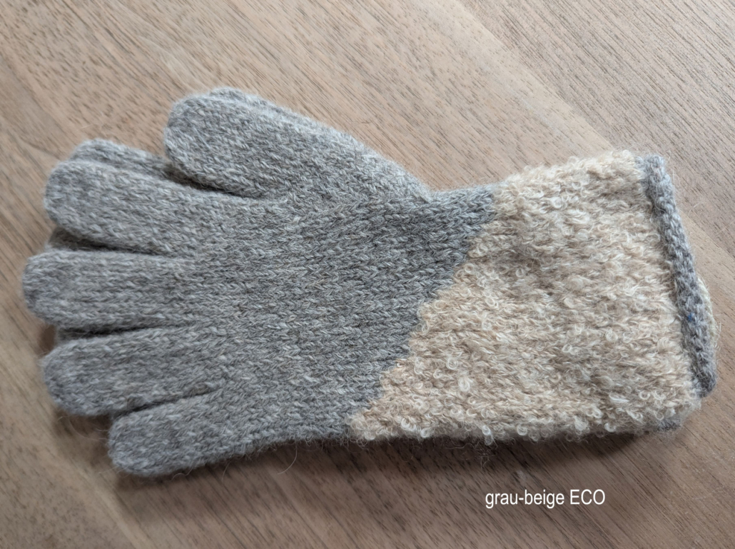 Die Handschuhe in den Farben grau-beige, hellgrau-weiß sowie weiß-hellgrau sind aus der ECO-Collection. Dies bedeutet: