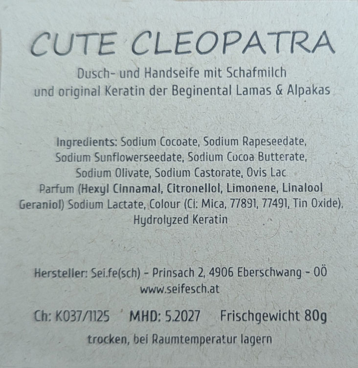 Pflegende Duschseife mit Schafsmilch und cremigem Duft, gewidmet unserer Lamastute „Cleopatra“